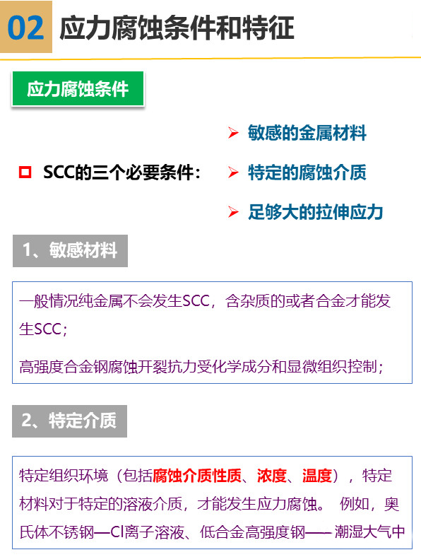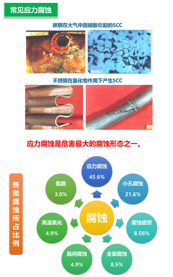 應力與環(huán)境共同作用下的腐蝕是局部腐蝕的一大類型。材料除受環(huán)境作用外還受各種應力作用,因此會導致較單一因素下更嚴重的腐蝕破壞形式。