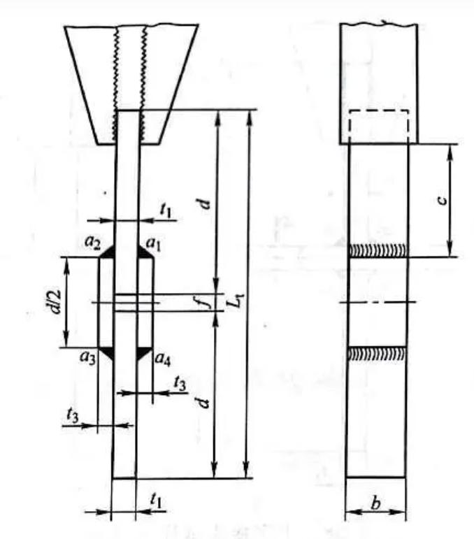 2)十字接頭試樣的尺寸應(yīng)符合圖2-58的規(guī)定。