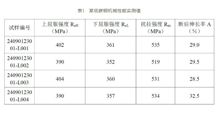 一般低合金鋼的上屈服強(qiáng)度比下屈服強(qiáng)度高出10%左右,如表1所示某低合金鋼實(shí)測(cè)ReH、ReL。