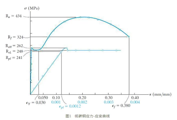如圖1所示某鋼材應(yīng)力-應(yīng)變曲線,ReH、ReL分別代表材料屈服階段的最大值和最小值。