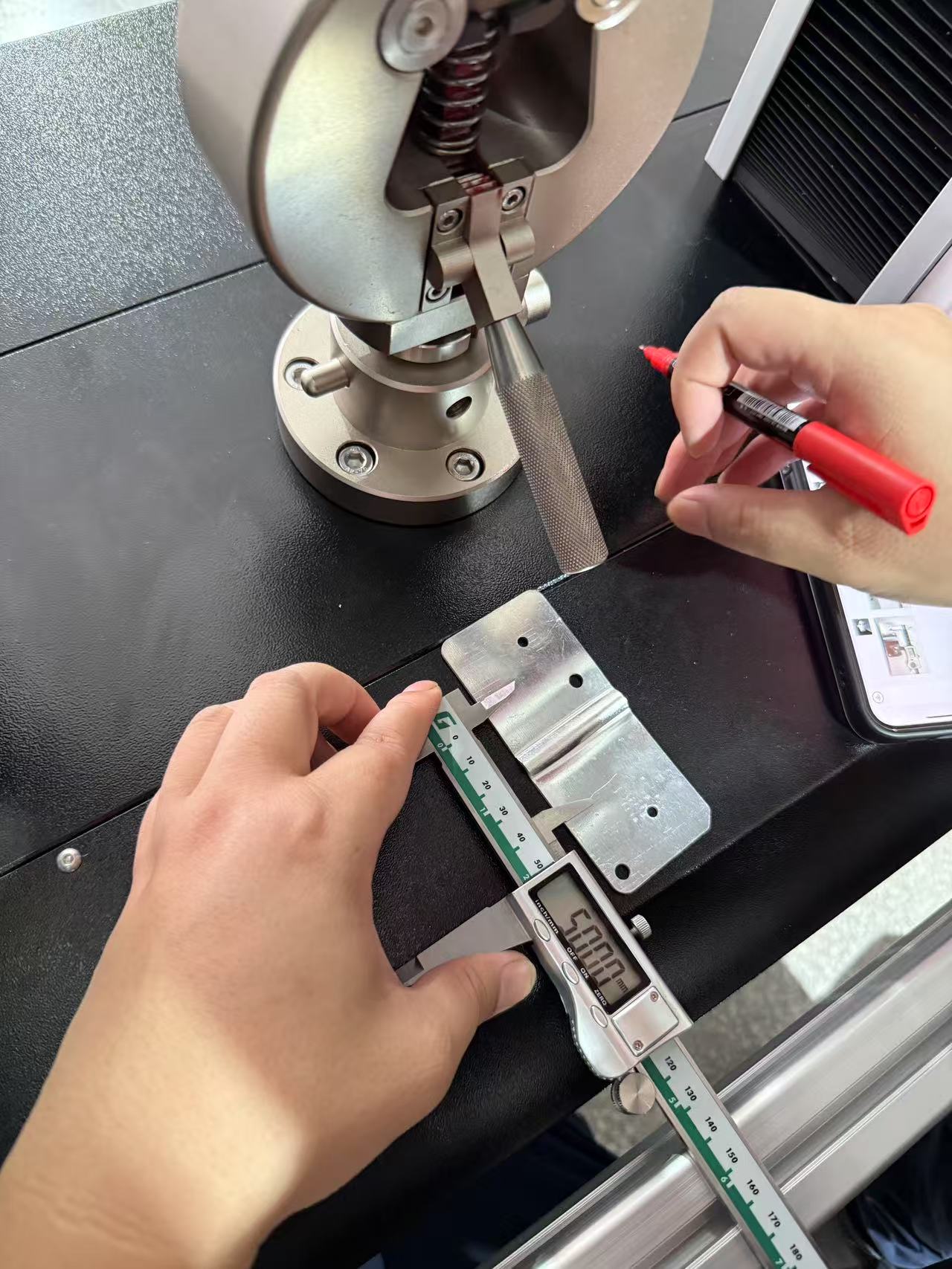 截取符合標準尺寸的鋁巴試樣(通常保留完整焊接區域),用細砂紙打磨邊緣毛刺。在試樣中部用劃針精確標定50mm原始標距(L?),確保標距線垂直于拉伸方向。