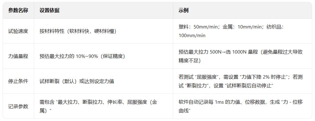 打開拉力機主機和配套軟件,選擇對應的 “拉伸試驗方法”(如 “GB/T 1040.1-2006 塑料拉伸”),軟件會自動加載該方法的默認參數(可后續調整)。